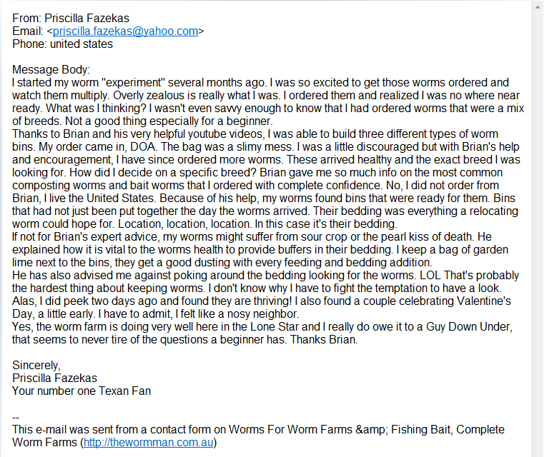 I also do packages locally where I deliver and setup the wheelie bin worm farm and conduct a short Workshop on it’s operation.